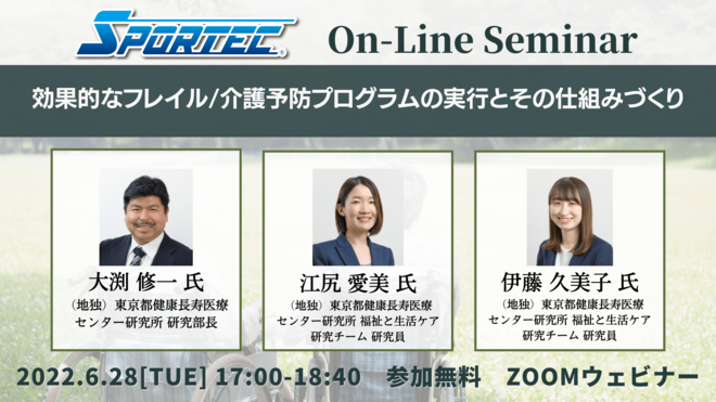 今回のSPORTECオンラインセミナーでは、効果的なフレイル/介護予防事業を実現するために「運動」をキーワードとして多種多様な事業者や専門家がどのような仕組みを構築していくとよいのか議論を重ねていきます。