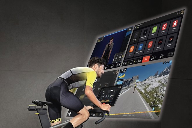 Technogym Rideは、22インチの一体型コンソール上で、Zwift, Strava, ROUVY, TrainingPeaks, Kinomap, BKOOLなどのサイクリストが最も愛するアプリから、NetflixやEurosportなどのエンターテイメントアプリ、そしてアウトドア(またはロード)でのパフォーマンス向上を目的としたトレーニングプログラムや体験に直接アクセスできる初のインドアバイクです。
