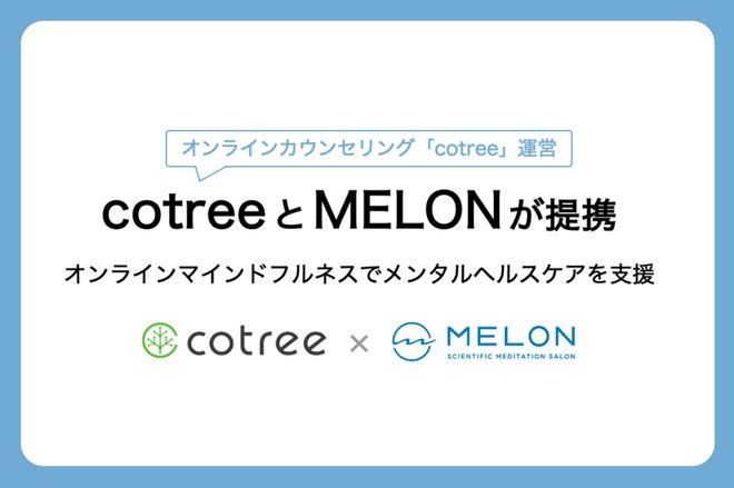 マインドフルネスのプラットフォーム「MELON(メロン)」を運営する株式会社Melon(以下MELON)は、オンラインカウンセリングの「cotree(コトリー)」を展開する株式会社cotree(以下cotree)と2022年9⽉1⽇(⽊)より連携を開始した。