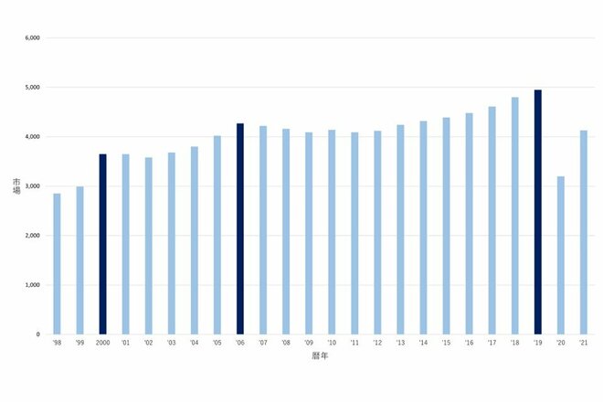 2021年は、回復基調に向かい、コロナ前の8割に近い水準まで回復した(グラフ)