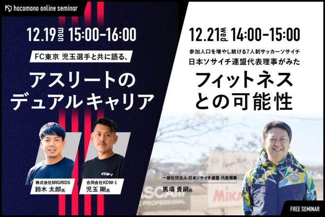 株式会社hacomonoは、12月19日(月)と12月21日(水)に、無料オンラインセミナーを開催する。