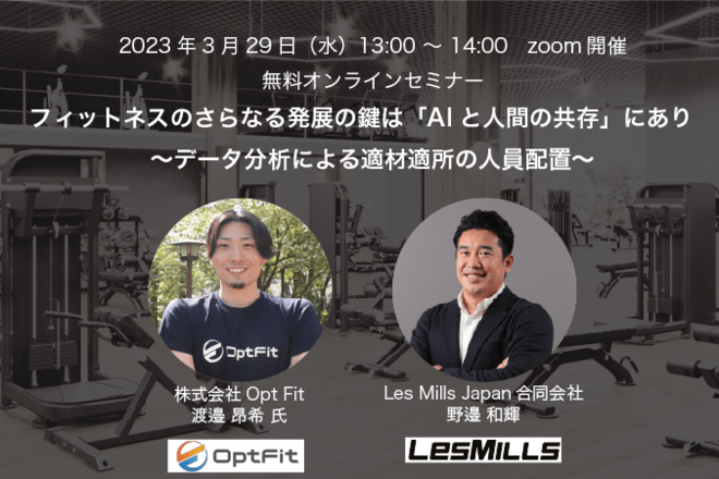 本セミナーではジム運営をAI化するGYM DXを提供している株式会社Opt Fit代表の渡邊昂希氏を迎え、フィットネス業界のAIの活用とフィットネスの未来についてディスカッションをする。