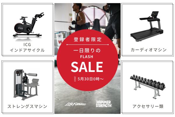 ライフ・フィットネス・ジャパン株式会社は、5月30日(火)、一日限りの登録者限定のオンラインセールを開催する。ライフ・フィットネス、ハンマー・ストレングス、ICGインドア・サイクルやアクセサリー類など、40種類近くの商品を特別価格で提供。マシンの購入をご検討の方は、ぜひこの機会に事前登録して、セールに参加してみてはいかがだろうか。