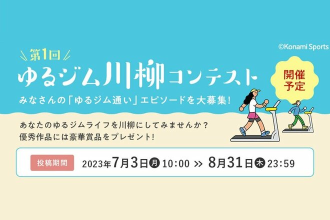 コナミスポーツ株式会社が運営する「コナミスポーツクラブ」は、「あなたの思う『ゆるジム通い』」を詠む「ゆるジム川柳」を募集するツイッターキャンペーンを開催する。