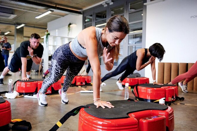 ・グループフィットネスでの有酸素運動と筋力トレーニング(中級から上級レベル)のためのパワープレートグループレッスンの作り方