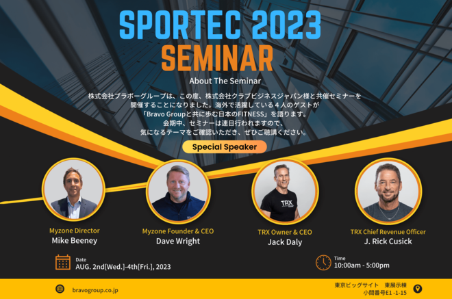2023年8月2日より開催されるSPORTEC2023において、株式会社ブラボーグループ(以下、ブラボーグループ)と株式会社クラブビジネスジャパンによる共催セミナーを開催する。