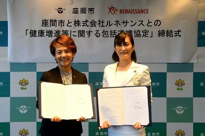 株式会社ルネサンス(以下、ルネサンス)は、神奈川県座間市と「健康増進等に関する包括連携協定」を締結した。本協定を通して、双方の連携と協力により、座間市民の健康づくりを推進していく。
