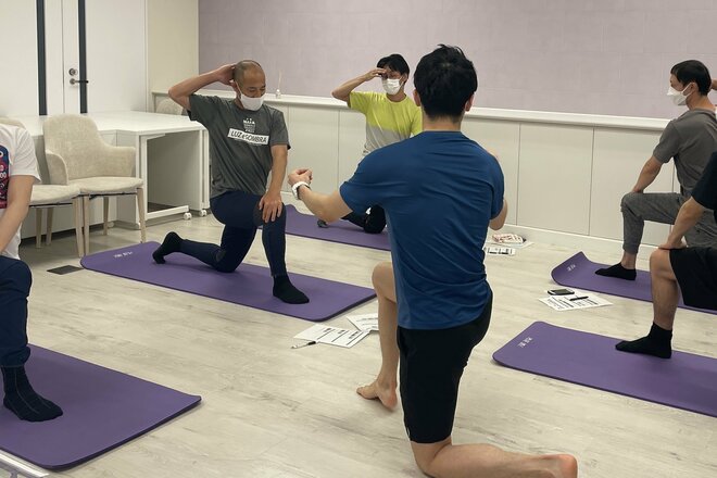 ① 3~5名が1グループとなり計4グループが各50分間、R-body トレーナーによるコンディショニングレッスンの受講