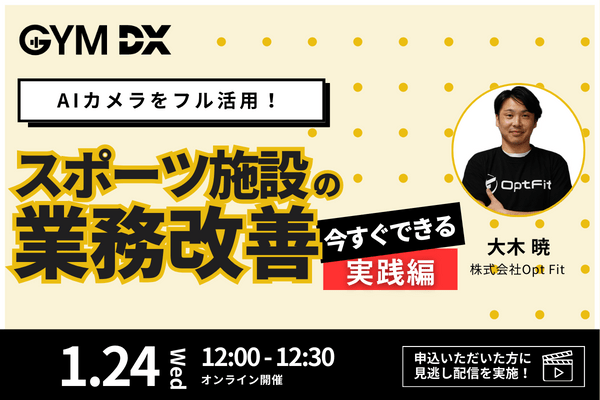 AIカメラ「GYM DX」を提供する株式会社Opt Fitは、2024年1月24日(水)に、スポーツ施設運営者様向けのオンラインセミナーを開催する。