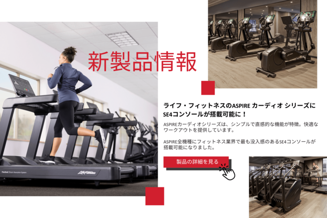 ライフ・フィットネス・ジャパンは、人気商品であるASPIRE カーディオ シリーズに16インチまたは24インチスクリーンを搭載したSE4コンソール搭載マシンが加わりました。大画面のSE4コンソールは直感的に操作できるスタイリッシュなデザイン。エクササイザーに最高のカーディオ体験をご提供します。