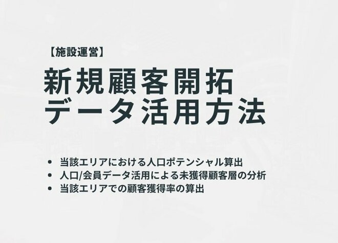 今回は新規出店時の人口データ調査ではなく、既存クラブでの未獲得顧客の特定に人口データを活用する方法についてご説明します。