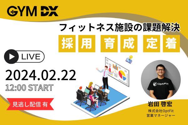 本セミナーでは、株式会社Opt Fitの営業マネージャーを務める岩田啓宏が、フィットネスインストラクターとして長年スポーツ施設運営に携わってきた経験から、フィットネス施設の重要課題である「採用・育成・定着」に向けた成功の秘訣をご紹介します。