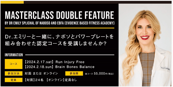 さらに、バランス、筋力、モビリティの向上をサポートするパワープレートやナボソ製品を使いこなすための方法を、米国足病医でありナボソ開発者のエミリー・スプリカル博士が直接伝授。