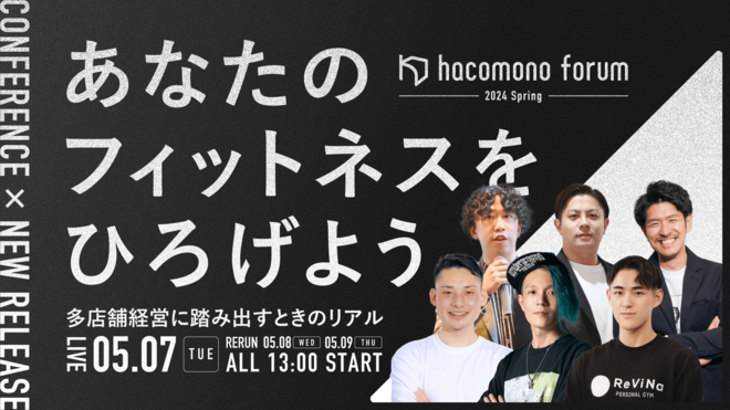ウェルネス/運動施設向けオールインワン・マネジメントシステム「hacomono」を提供する株式会社hacomono(本社:東京都渋谷区 代表取締役CEO:蓮田健一 以下、hacomono)は、2024年5月7日に「hacomono forum 2024 Spring」を開催いたします。