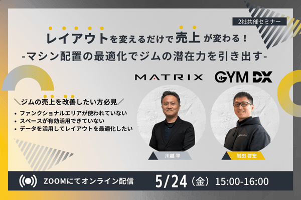 本セミナーは、Opt Fitの知見とジョンソンヘルステックジャパンの実績を活かしたデータ分析に基づくマシン配置の最適化や、ジムのレイアウト改善による売上向上が見込めるセミナーである。