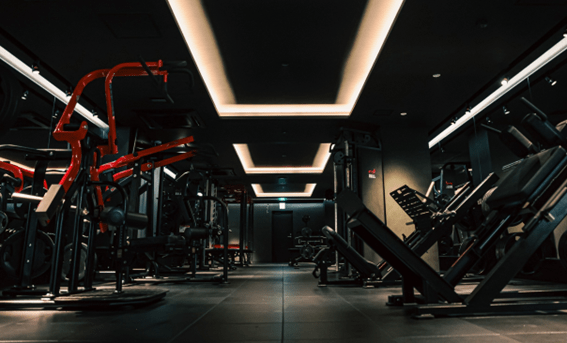 フリーウェイトエリアには、オリンピア公認のプレートローディング式マシン“M TORTURE”や、パワーラック、垂直スミスマシンとスーパースミスマシン、ダンベルエリア、「ザオバ」の展開する“Bull”のハックスクワットやレッグプレスなどを設置。筋肉をダイレクトに刺激する軌道を目指し、設計されたラインナップが楽しめる。