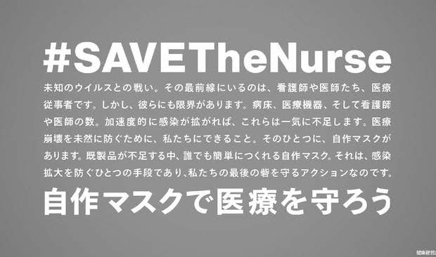 株式会社ルネサンスが事務局として支援している健康経営会議実行委員会が、2020年4月から自作マスクの啓発・推奨キャンペーン、「自作マスクで医療を守ろう#SAVETheNurse」を始動する。