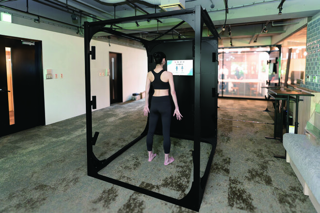 BEEATS が提案するUXは、3Dボディスキャナー「i BODY 」。専用ブースに取り付けられたタッチパネルモニターを数回タップするだけで、身体の状態がデジタルデータ化され、スマートフォンでその日の身体の状態を確認して、自分に合ったセルフコンディショニングを行える。短時間で手軽に「身体が整う」ウェルネスエクスペリエンスが感じられる。
