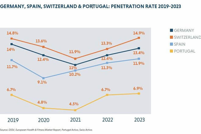 米国、英国、ドイツ、スペイン、スイス、ポルトガルが過去最高の会員数と参加率を記録しているが(図1〜7)、中南米やアジア諸国、さらにはメキシコ、インド、サウジアラビアなどの市場のデータも好調そのもので、世界各国の生活者のフィットネスサービスへの信頼感は増していることがわかる。