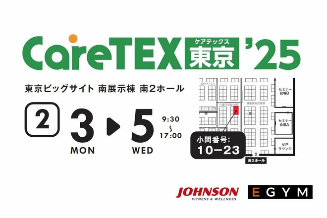 ジョンソンヘルステックジャパン株式会社は2025年2月3日(月)~5日(水)の3日間、東京ビッグサイトにて開催されるCareTEX東京’25にて、AIフィットネスマシン【EGYM】を展示する。ブースでは、ゲストもお招きし、相談会や体験会などのイベントや、国内外での導入事例や成功事例を紹介する。