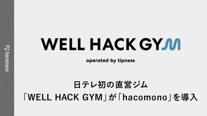 株式会社hacomono(東京都渋谷区:代表取締役CEO 蓮田 健一 以下、hacomono)が提供するウェルネス/運動施設向けオールインワン・マネジメントシステム「hacomono」が、日本テレビ放送網株式会社(本社 東京都港区:代表取締役社長執行役員 福田 博之)初となる直営ジム「WELL HACK GYM」の運営システムとして採用された。