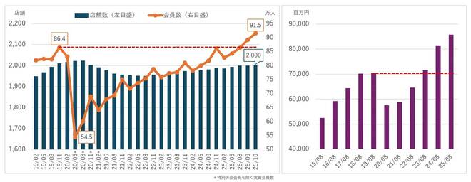 なお、2025年8月期の株式会社カーブスホールディングス連結決算においては、売上高375.6億円(前年同期比5.9%増)・営業利益63.4億円(同16.2%増)と、いずれも過去最高を更新している。