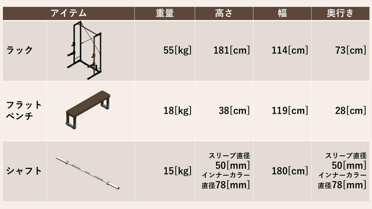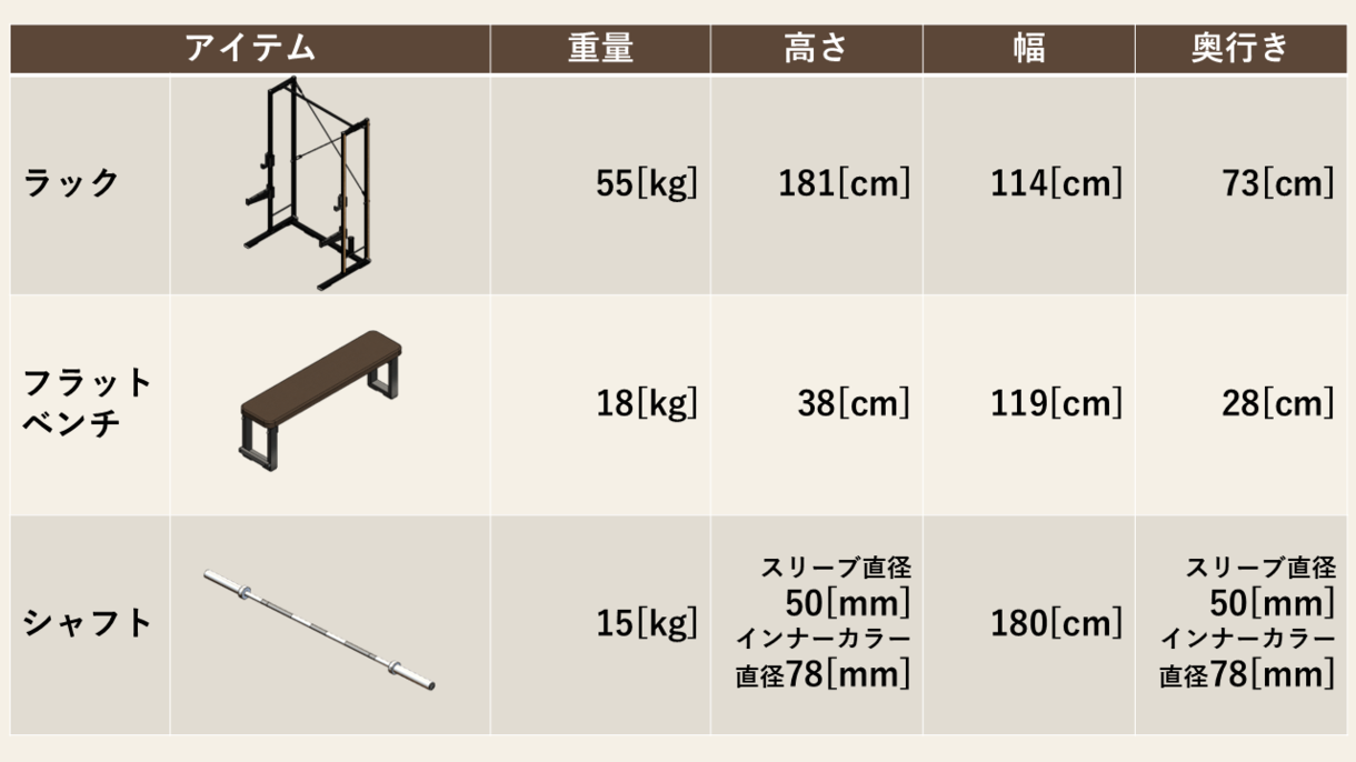 ・フラットベンチの耐荷重テスト(250kgf-3分間)といった様々な社内テストをクリアしています