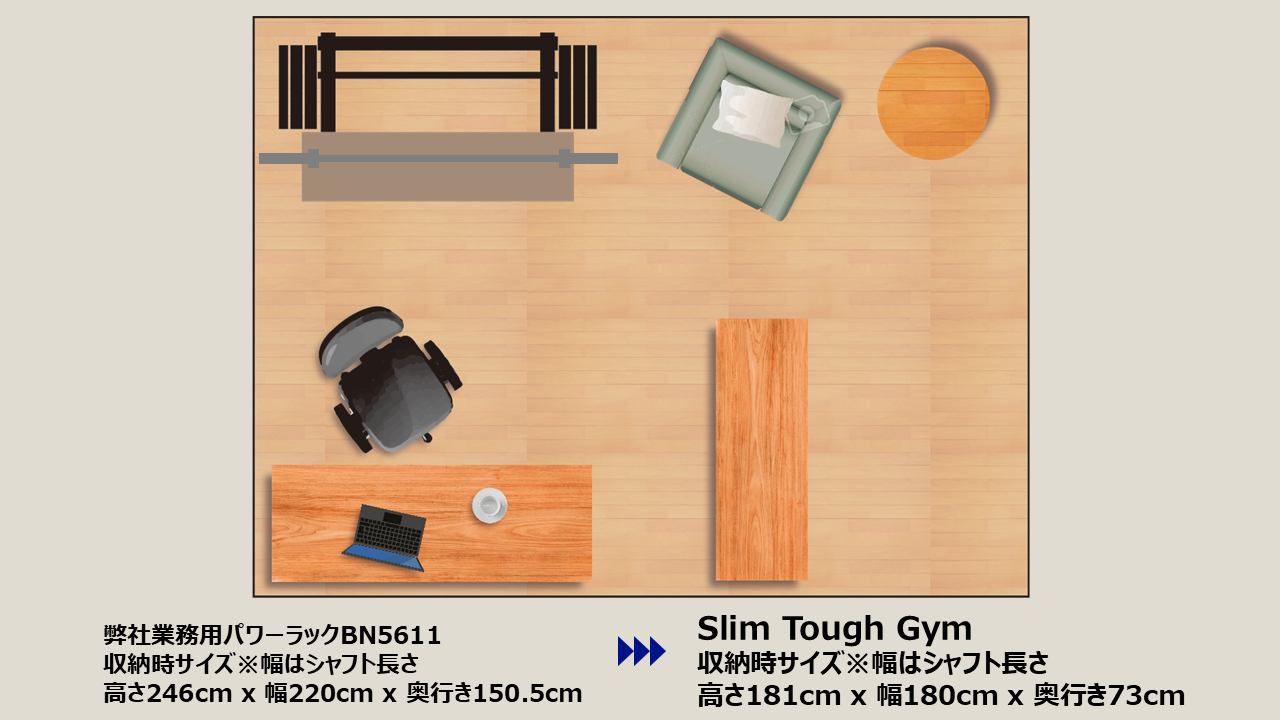 「わずか1畳半の本格ジム」「心地よいプライベートジム空間をひとり占め」「小さく置いて、大きく鍛える」を謳う同社「Slim Tough Gym」の魅力に迫る。