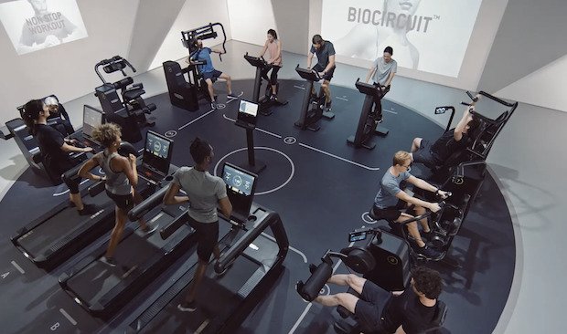 筋トレと有酸素運動を交互に行うことで、短時間でも成果が出やすいと人気のサーキットトレーニング。なかでもテクノジムの「BIOCIRCUIT」(以下、バイオサーキット)はAI搭載により、ユーザーがわずらわしいと感じる操作を不要としたほか、ストレングスマシンにおいてはこれまで人のサポートが必要とされてきたトレーニングも可能にした。