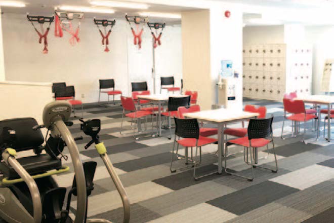 ’12年から、スポーツクラブや介護予防教室では対応が難しい方に向けて、元氣ジムの事業をスタート。施設面積は50坪前後の施設で、運動指導員、理学療法士、看護師が常駐している。現在、元氣ジム