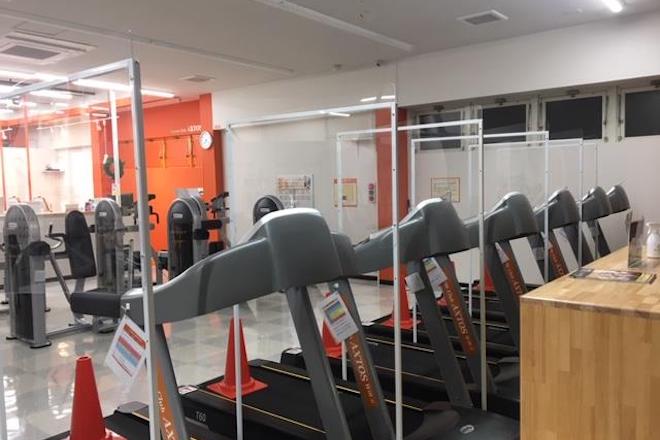 フィットネスジムエリア拡張により、マシンの間隔を空けて配置。ランニングマシンの間に飛沫を防ぐパーテーションを設置するなど、3密を回避できる施設に生まれ変わった。”Withコロナ”と呼ばれる時代に適応した施
