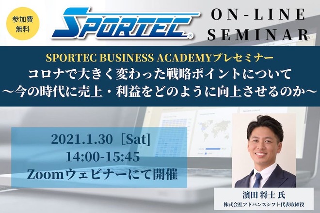 開講を1週間後に控えた今回のSPORTECオンラインセミナーは、BUSINESS ACADEMYプレセミナーとしてコロナで大きく変わったフィットネス・スポーツクラブの戦略のポイントについて売上・利益をどのようにして向上させていくのかをお伝えする。