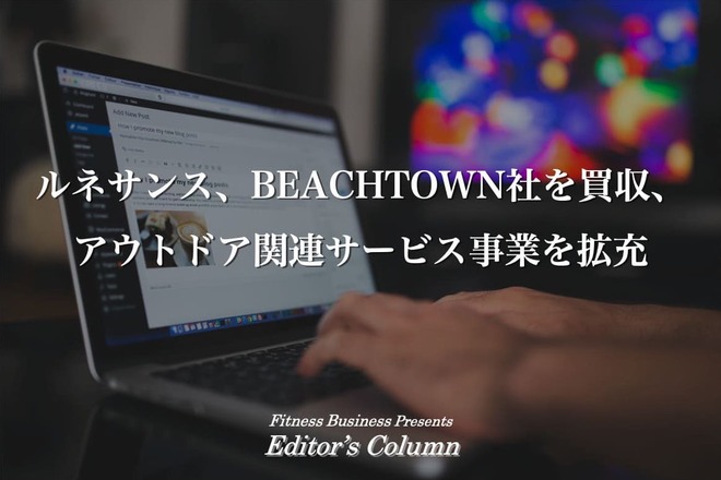 ルネサンスが 、全国で 24 か所のアウトドアフィットネスクラブやパークPFIをプロデュースし、それらの施設を直営または運営受託で展開しているビーチタウンを買収し、アウトドア関連事業を強化していくという発表がありました(関連記事はこちら)。