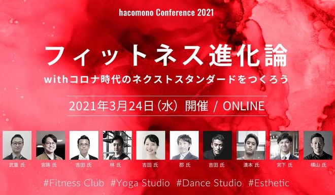 月謝制サブスク店舗のための次世代 会員管理・予約・決済システム「hacomono」が、2021年3月24日(水)にフィットネス業界の企業10社に登壇いただき、「hacomono Conference 2021 フィットネス進化論」をオンライン開催する。