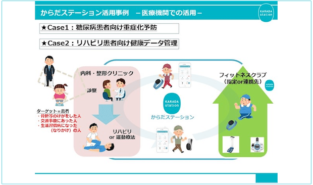 健康維持・増進のために、病院に通院していない際の遠隔サポートおよびライフログ収集のツールとして、通院時には日常のデータを活用していただくための用途としても、「からだステーション」