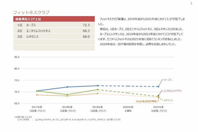 カーブスは2014年度に初めて調査対象となって以降、2021年度までの7年連続で顧客満足度第1位の評価を獲得※。同調査において、7年以上連続での顧客満足度第1位の評価は、フィットネスクラブ業種では初となる。