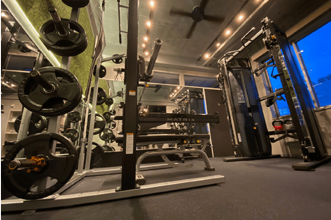 2種類のマシンを対面に配置して拮抗筋を刺激するスーパーセット法によって、最小限のスペースと時間でメンバーの求める結果を出し続ける超効率型パーソナルジム「Narcisco」。