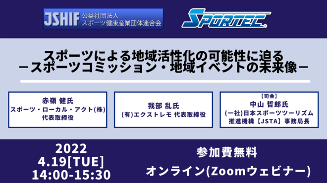 4月19日14時より、スポーツによる地域活性化の可能性に迫る-スポーツコミッション・地域イベントの未来像-をテーマにオンラインセミナーを開催する。