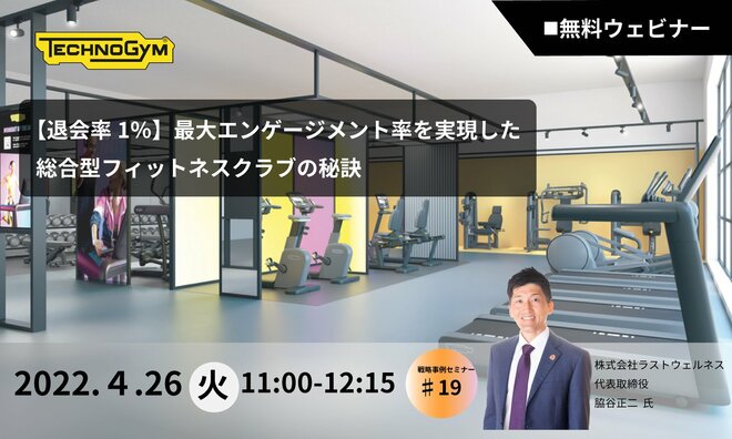 今回のウェビナーでは、株式会社ラストウェルネス脇谷社長に登壇いただき、退会率1%台で、新規入会者の1年継続率75%という、高い顧客エンゲージメントを生み出している秘訣についてお話を伺っていきます。